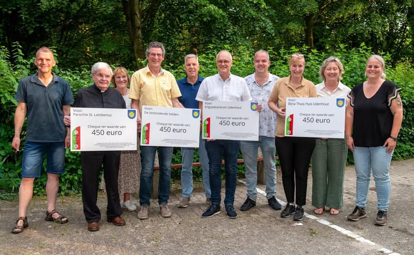 Gisterenavond hebben wij aan 4 goede doelen (in willekeurige volgorde; Verbindende Velden, Erfgoedcentrum Udenhout, Bijna Thuis Huis Udenhout en Parochie St. Lambertus) een cheque uitgereikt met een heel mooi bedrag.